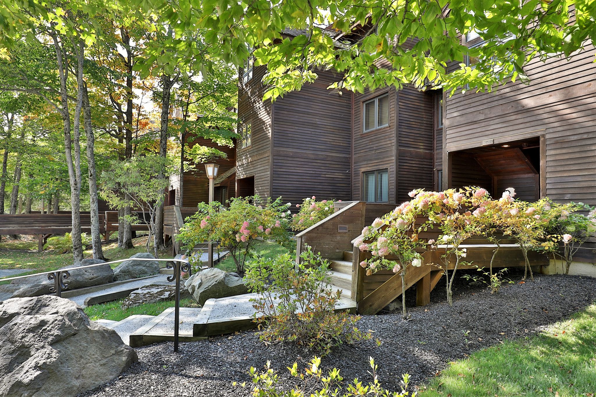 Managed by Killington Resort - These deluxe accommodations feature stone fireplaces and spacious interiors with great views. The condominiums include a full kitchen, fireplace, washer and dryer, TV/DVD, stereo and free WiFi. A sauna or whirlpool tub is in every condominium; deluxe units include both. In the winter a free slope shuttle takes you to the slopes, only 1 mile away. Highridge pool is OPEN.  Winter - Enjoy Free shuttle Saturdays and Sundays. A ski-home trail featuring some flat terrain & walking is also available (not recommended for snowboarders or skiers who cannot skate on their skis). SUMMER; In summer, Highridge offers mountain bike trail access from the Killington Mountain Bike Trail System. Having trouble finding your room? Call Killington Central Reservations for help, 1.800.621.6867. We are here to assist you 7-days a week.